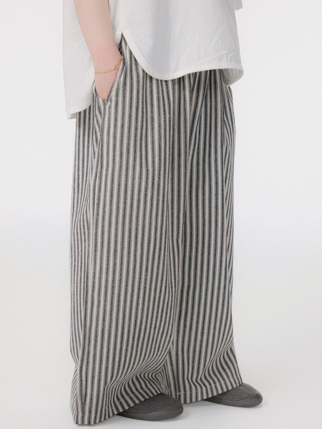 簡約條紋寬鬆長褲