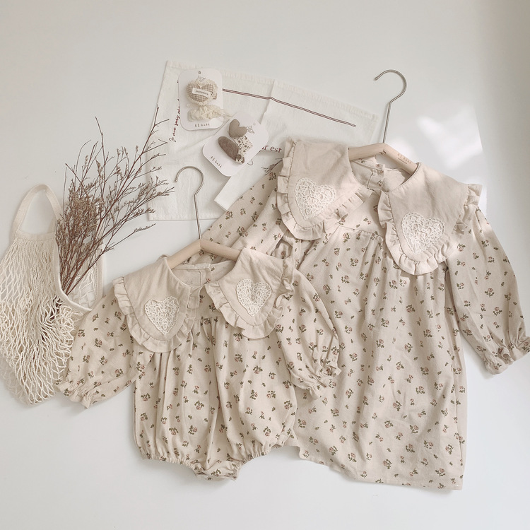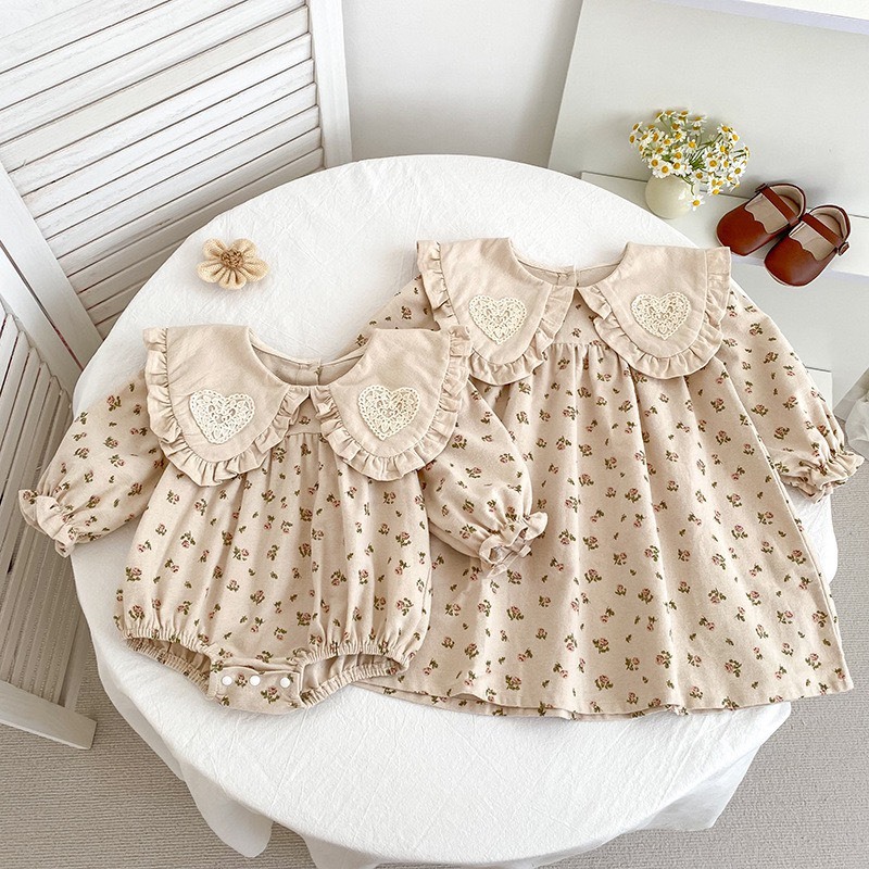 愛心翻領碎花洋裝