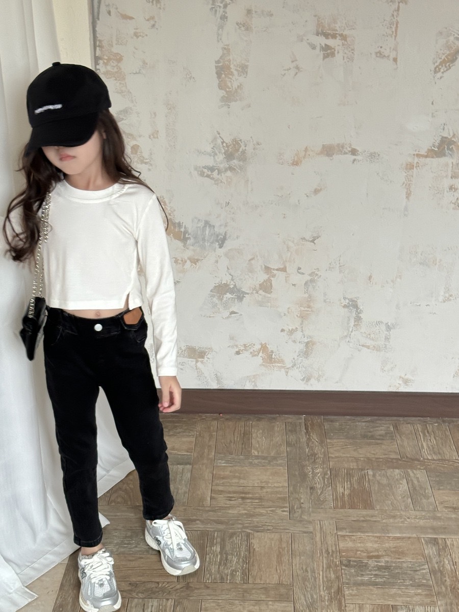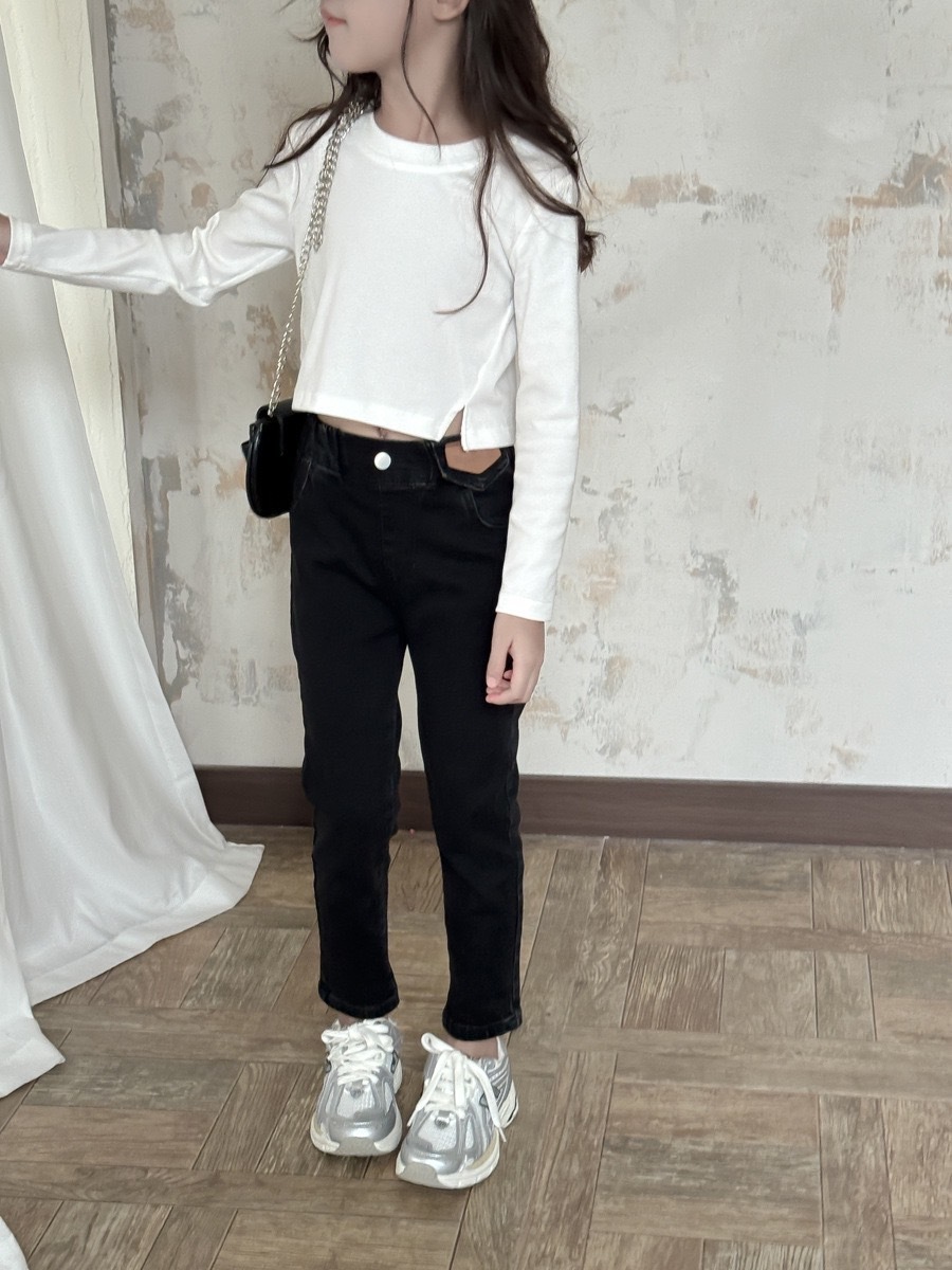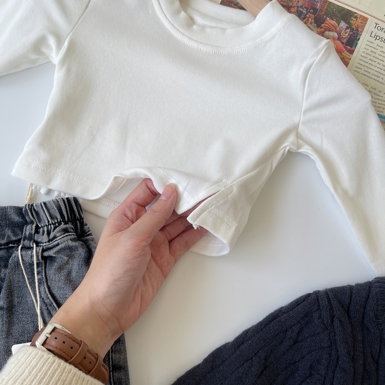 斜開叉短版長袖上衣