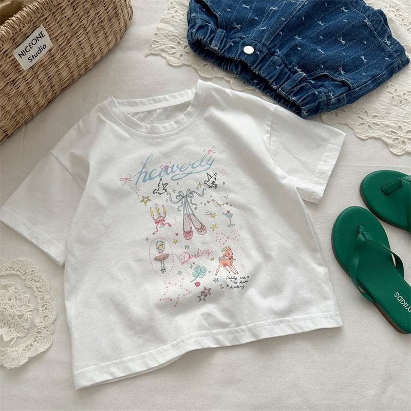 芭蕾風印花短袖上衣