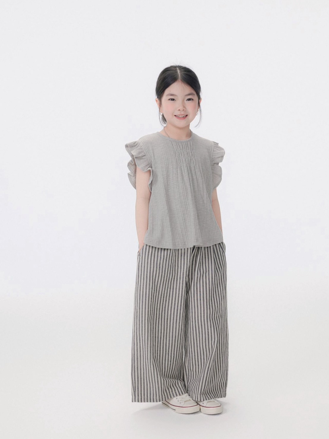 荷葉邊坑條上衣|大人