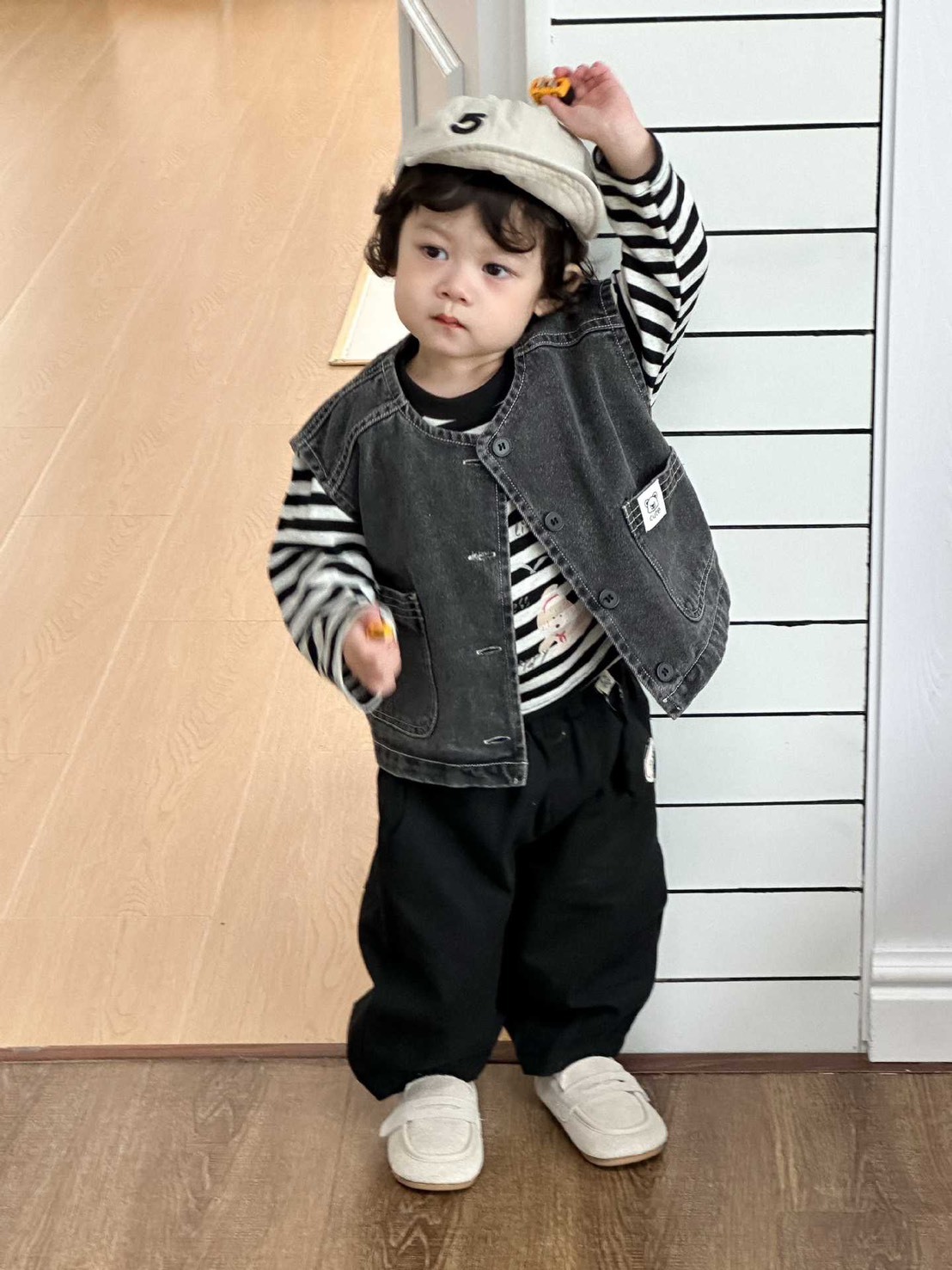 車線小標牛仔背心