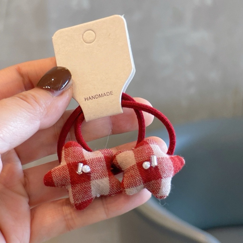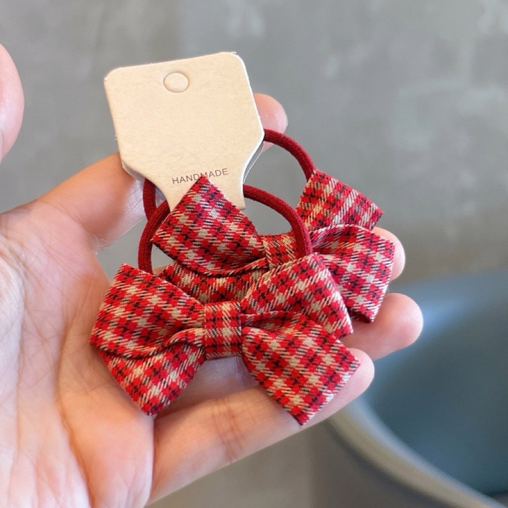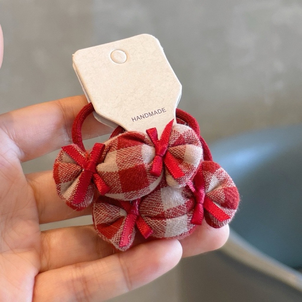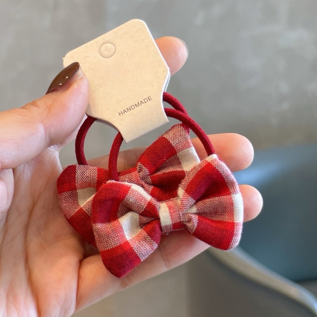 韓系紅格子髮圈