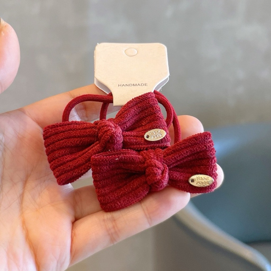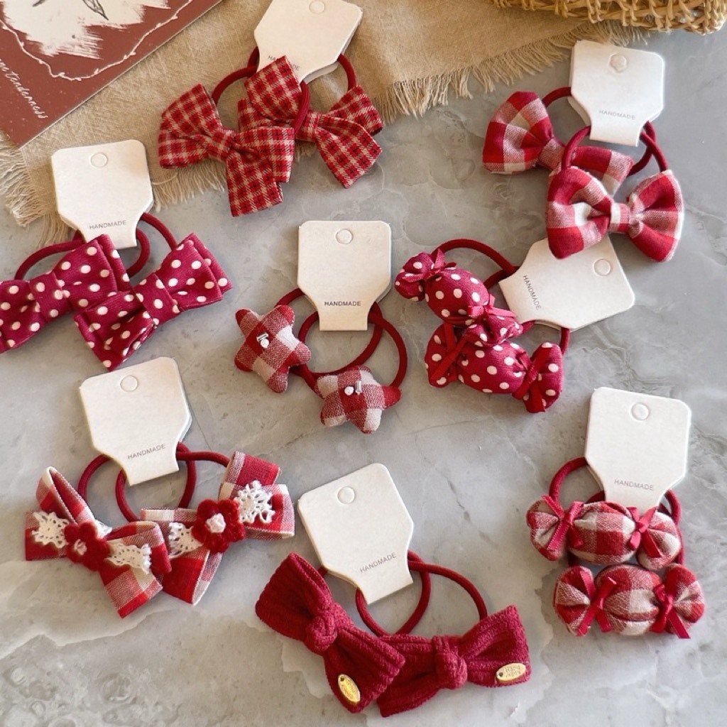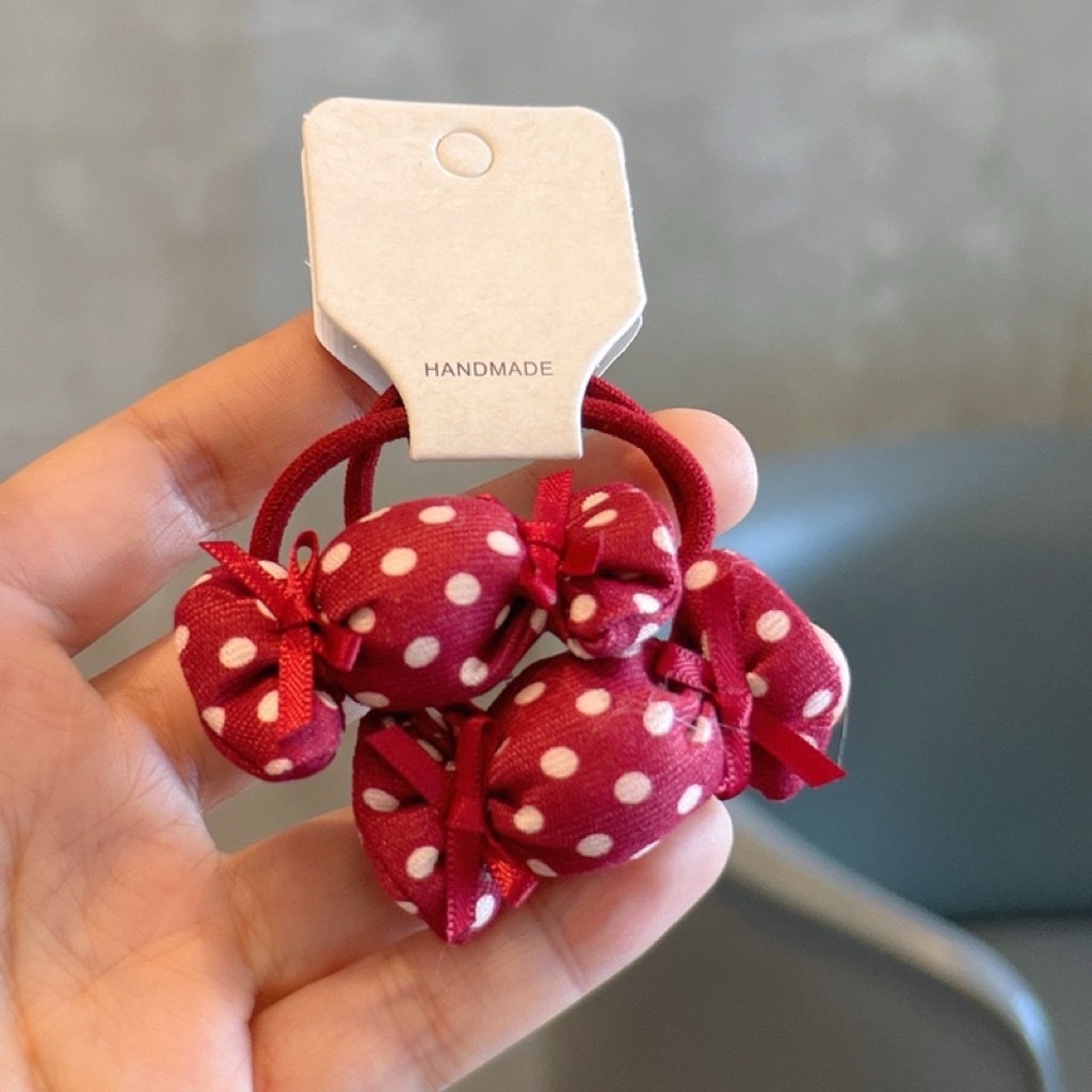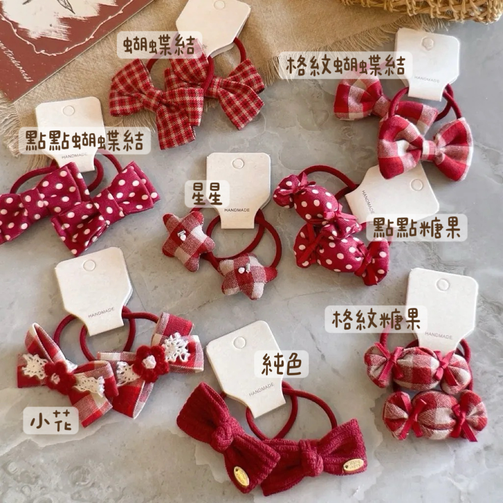 韓系紅格子髮圈